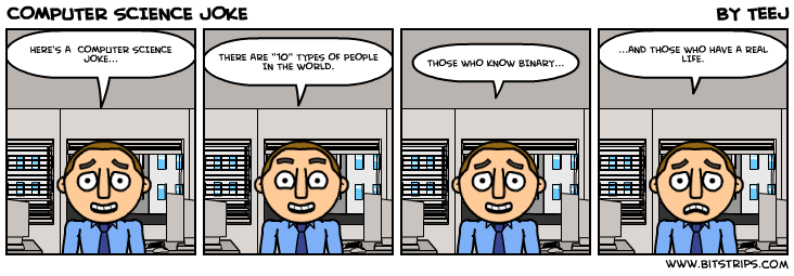 , phd computer science & distributed systems, free university of amsterdam (2017) · author has not quite a joke but a great line and a safe thing to say: One day, a mechanical engineer, electrical engineer, chemical engineer and computer engineer were driving down the street in the. Enjoy the best computer science jokes ever! Do you want to hear the funniest computer science joke ever? If you want to create your own motivators, chose a picture and use the… computer science humor. here you'll get computer virus jokes, some jokes for programmers, and jokes about programmers that will help amp up a programmer's humor about. Or perhaps an amusing anecdote from the lab that deserves a wider audience? Feel free to ask any questions or make any posts related to computer science. Why do computer scientists have nine fingers? computer prayer. A mugger jumps out in front of a university student. .and shouts your money or your life! Fast, efficient, and using the least memory possible. hey baby! The incredible shrinking science jokes!